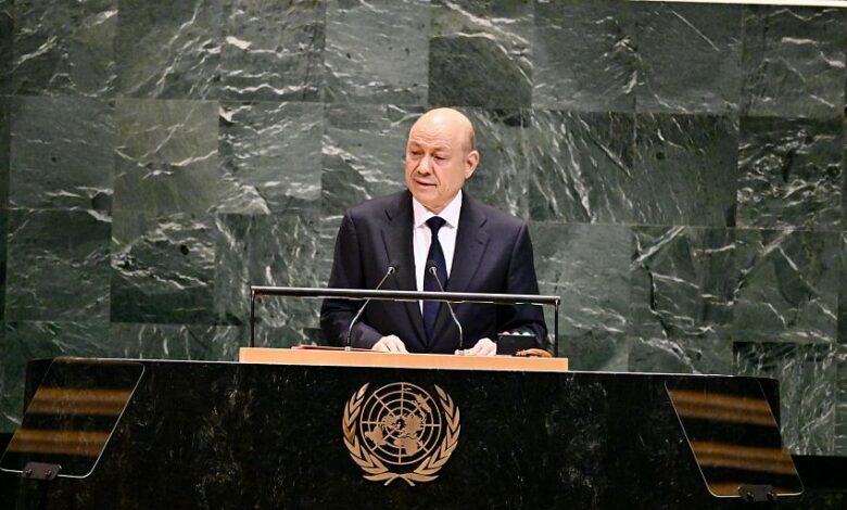 وقال رئيس مجلس القيادة الرئاسي في كلمة اليمن أمام الدورة الثمانين للجمعية العامة للأمم المتحدة” انه بات ضروريا التحرك بصورة جماعية، وحاسمة من اجل “فرض السلام” المنشود في اليمن.